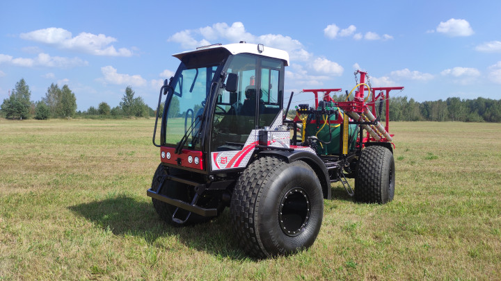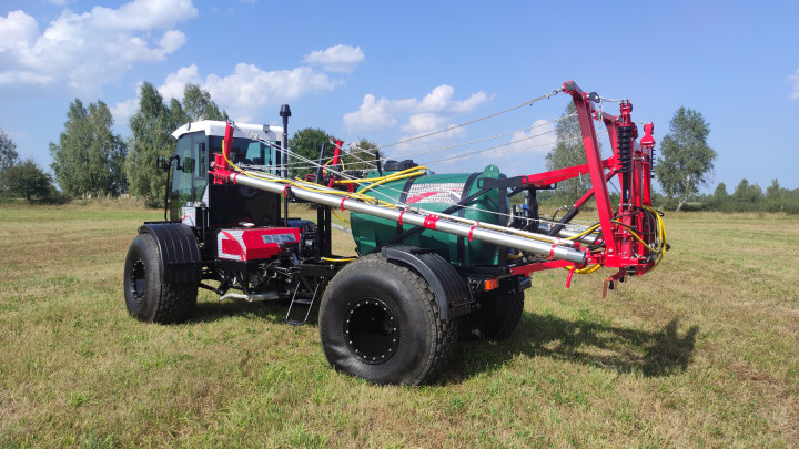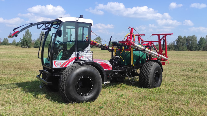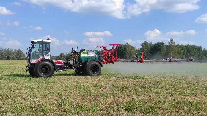 Разбрасыватель-опрыскиватель самоходный модели «Мекосан 1000» в модификациях: разбрасыватель самоходный модели «Мекосан 1000 Р», опрыскиватель самоходный модели «Мекосан 1000-18» предназначен для работы в сельском хозяйстве и используется для химической защиты полевых сельскохозяйственных культур, возделываемых по интенсивным технологиям от вредителей, болезней и сорняков, а также для внесения жидких, твердых, минеральных удобрений и средств защиты растений. Благодаря применению шин низкого давления есть возможность осуществлять раннюю подкормку КАС и химзащиту растений, вносить твёрдые минеральные удобрения по переувлажнённой почве без нанесения повреждения посевам.