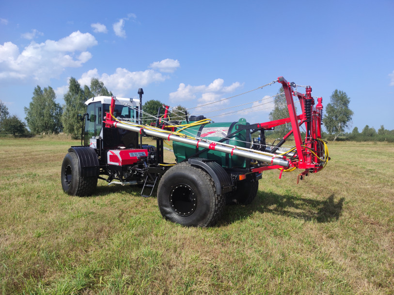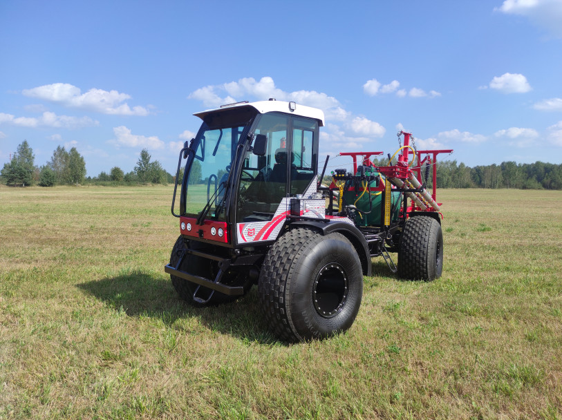 Разбрасыватель-опрыскиватель самоходный модели «Мекосан 1000» в модификациях: разбрасыватель самоходный модели «Мекосан 1000 Р», опрыскиватель самоходный модели «Мекосан 1000-18» предназначен для работы в сельском хозяйстве и используется для химической защиты полевых сельскохозяйственных культур, возделываемых по интенсивным технологиям от вредителей, болезней и сорняков, а также для внесения жидких, твердых, минеральных удобрений и средств защиты растений. Благодаря применению шин низкого давления есть возможность осуществлять раннюю подкормку КАС и химзащиту растений, вносить твёрдые минеральные удобрения по переувлажнённой почве без нанесения повреждения посевам.