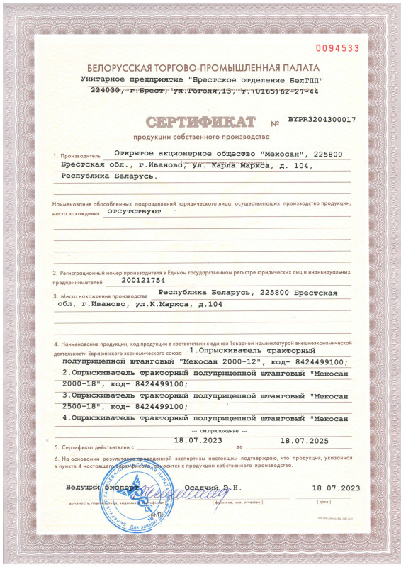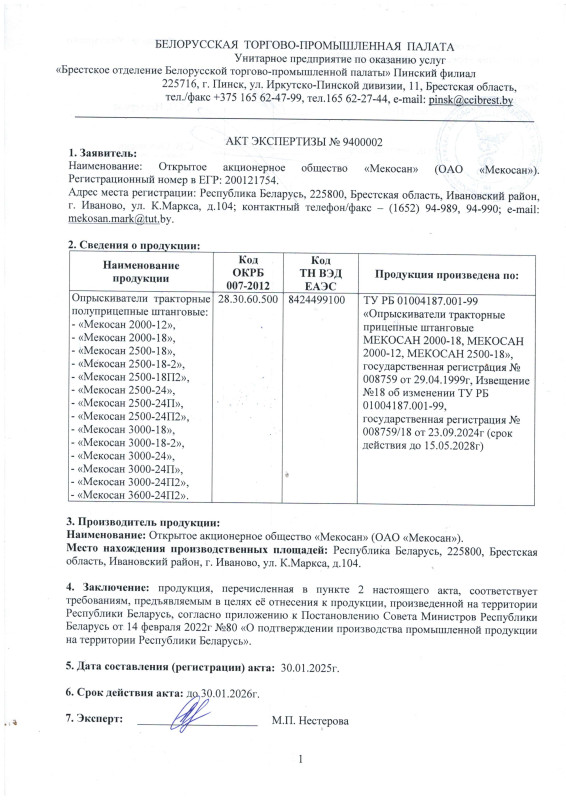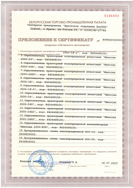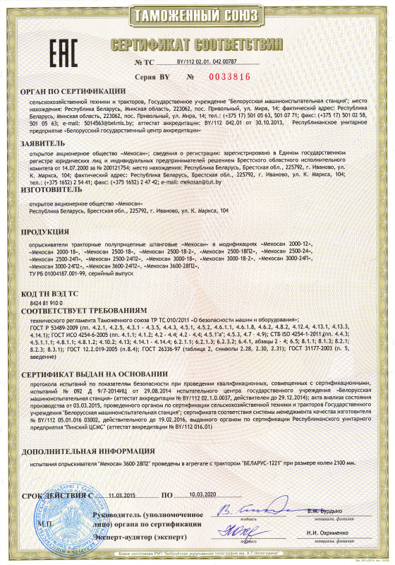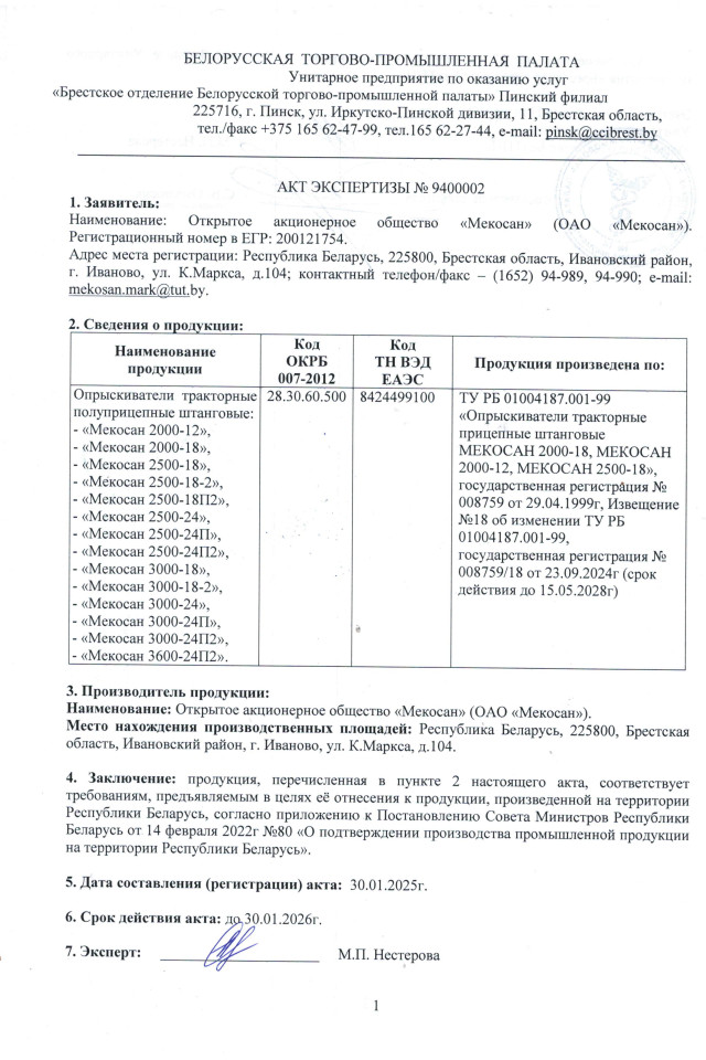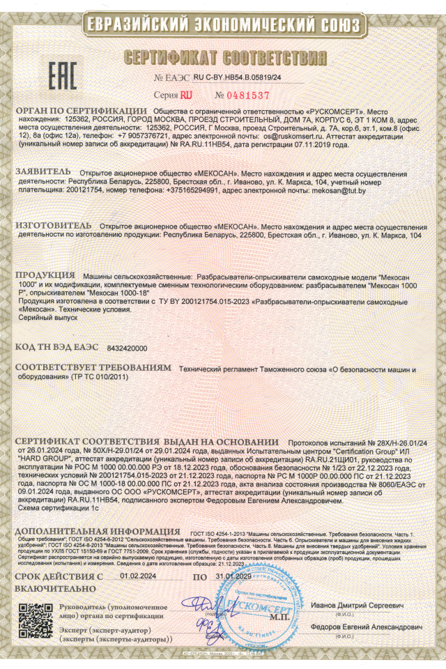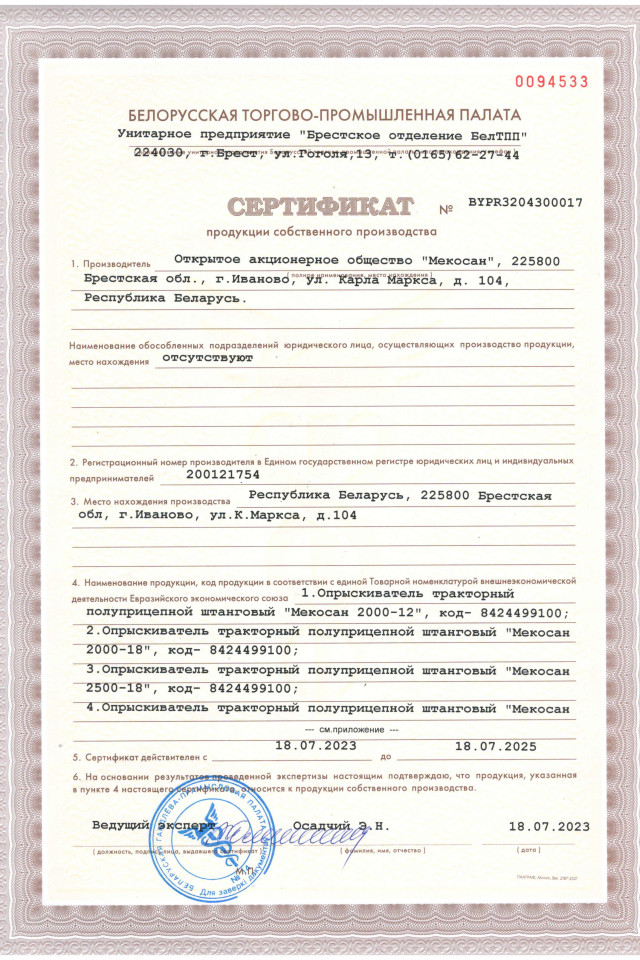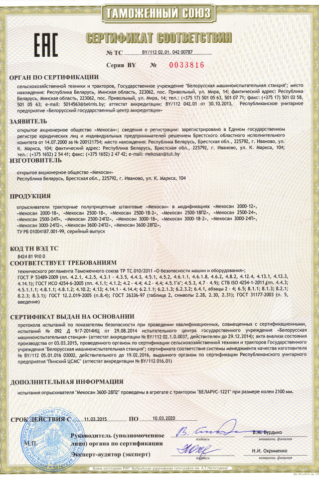 Опрыскиватель самоходный "Блюминг-Мекосан БЛ-3000"